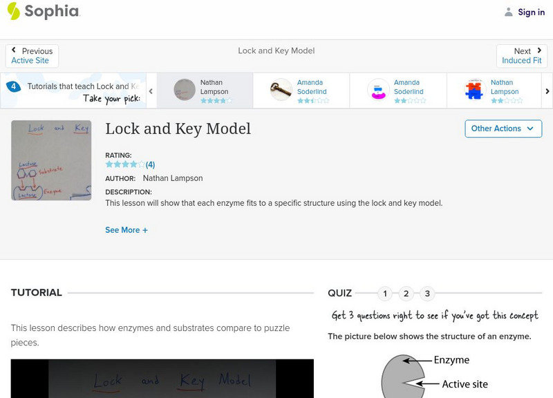 This lesson will show that each enzyme fits to a specific structure using the lock and key model. It is 1 of 4 in the series titled "Lock and Key Model."