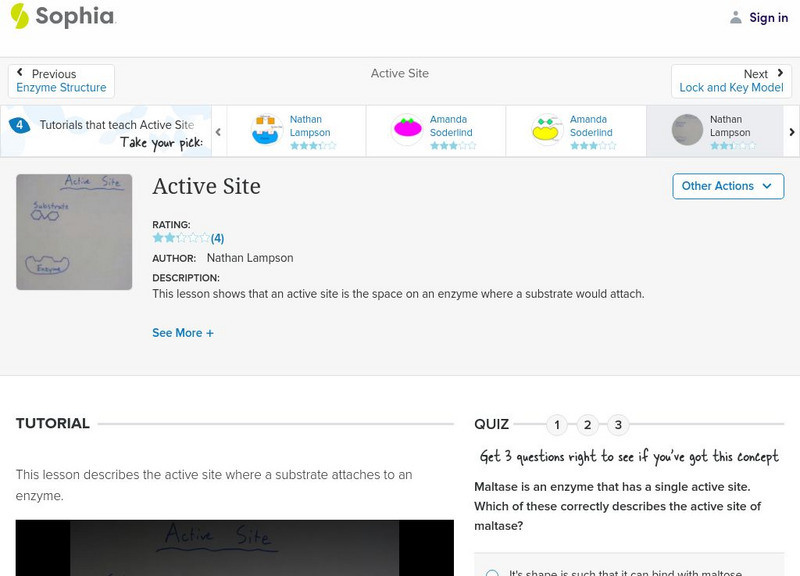 This lesson shows that an active site is the space on an enzyme where a substrate would attach. It is 1 of 4 in the series titled "Active Site."