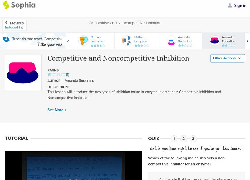 Sophia: Competitive and Noncompetitive Inhibition: Lesson 3