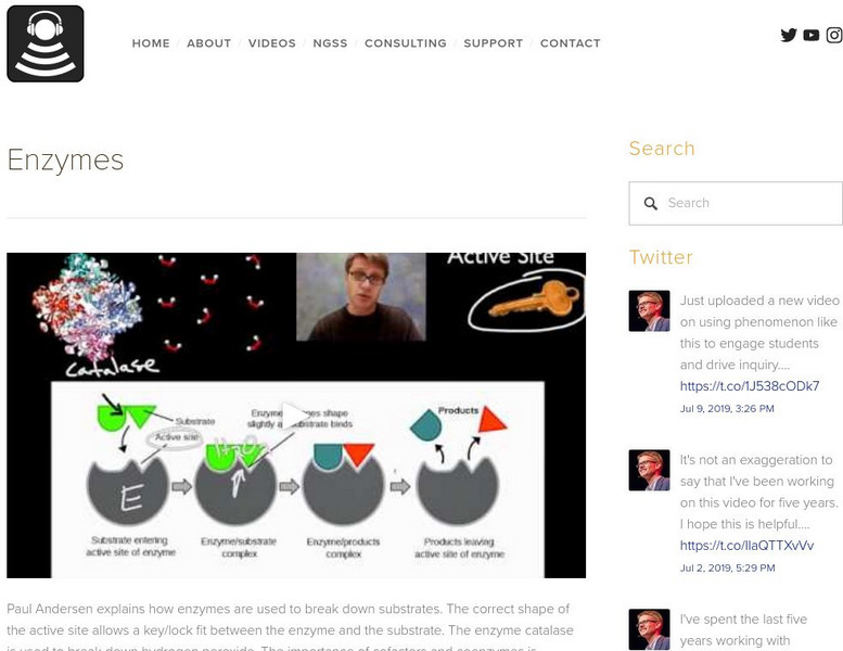 Paul Andersen explains how enzymes are used to break down substrates. The correct shape of the active site allows a key/lock fit between the enzyme and the substrate. The enzyme catalase is used to break down hydrogen peroxide. The...
