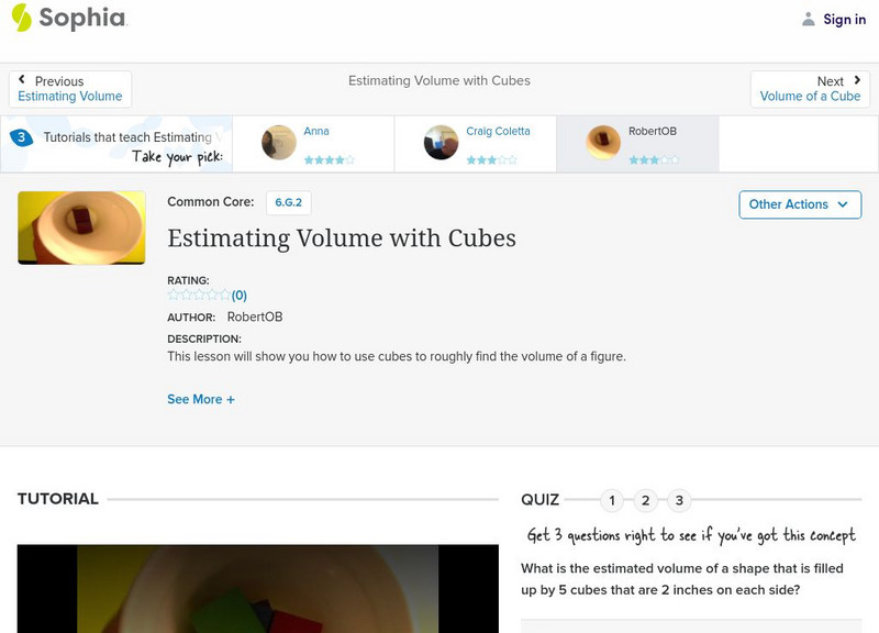 Sophia: Estimating Volume With Cubes: Lesson 6