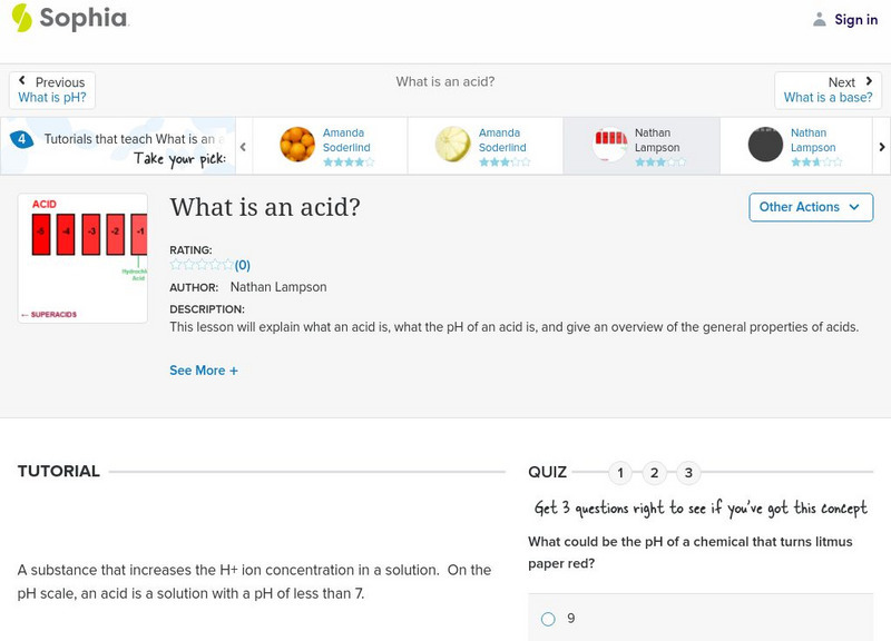 This lesson will explain what an acid is, what the pH of an acid is, and give an overview of the general properties of acids. It is 3 of 4 in the series titled "What is an acid?"