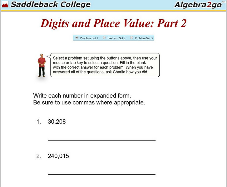 Algebra2go: Digits and Place Value: Part 2 Problem Sets