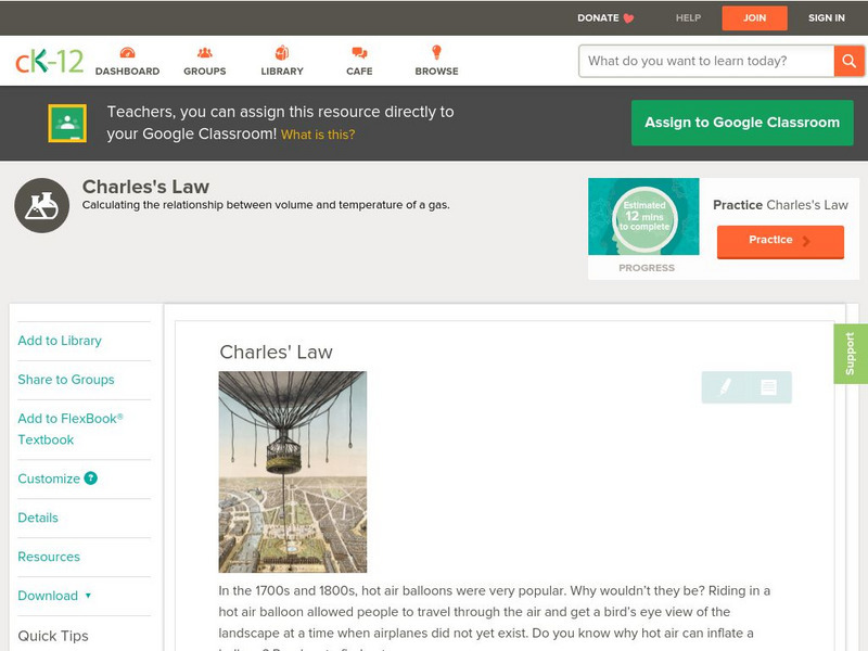[Free Registration/Login may be required to access all resource tools.] Charles' law and the relationship between the volume and temperature of a gas.