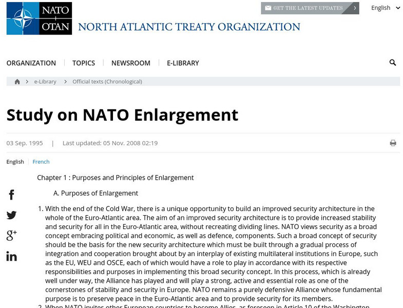 This resource presents the official study on the expansion and enlargment of the function and role of the North Atlantic Treaty Orginization (NATO).