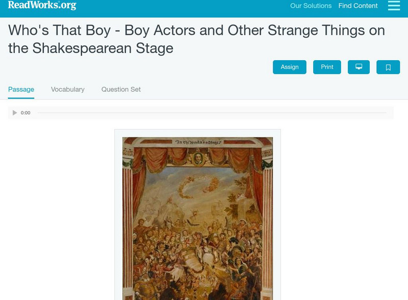 Read Works: Who's That Boy Boy Actors and Other Things on Shakespearean Stage