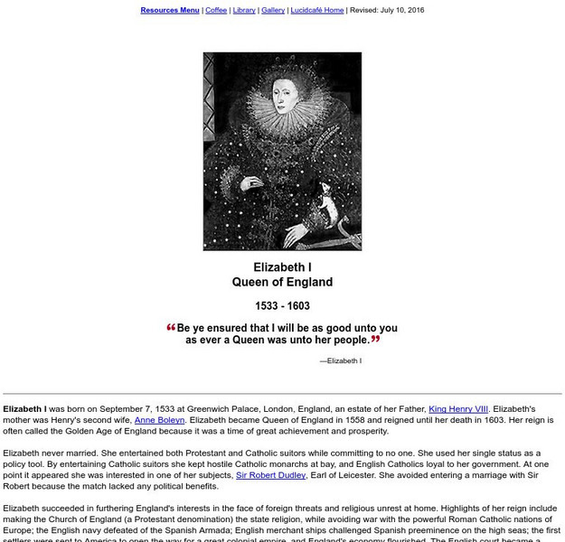 Lucidcafe: Elizabeth I, Queen of England
