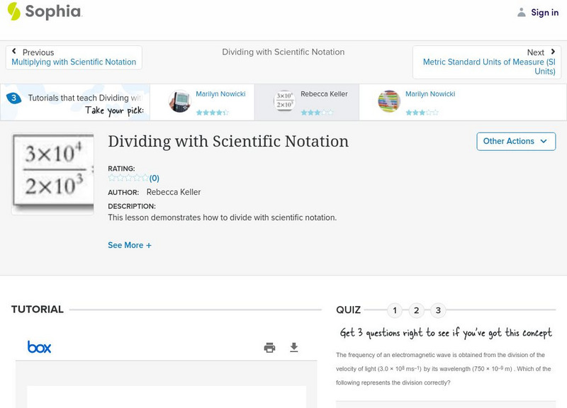 Sophia: Dividing With Scientific Notation: Lesson 3