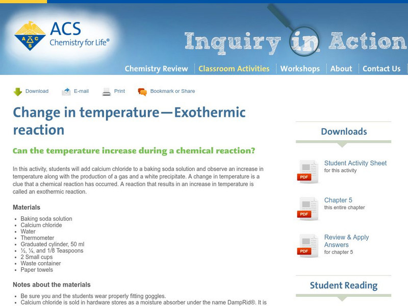 Inquiry in Action: Change in Temperature: Exothermic Reaction