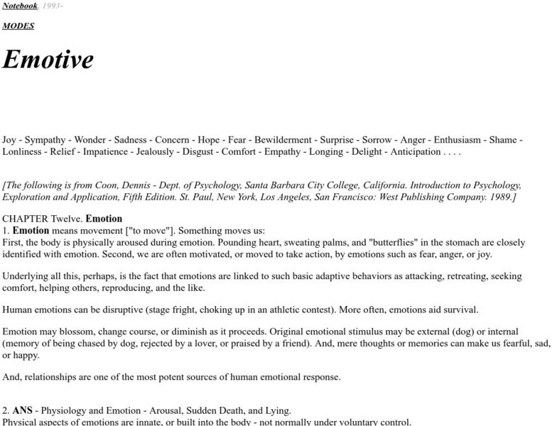 This site from Noteaccess.com defines emotion, gives summaries of the main theories of emotions, identifies the eight primary emotions according to Robert Plutchik, and breifly discusses body-language.