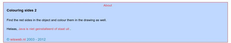 Learners use the colored portion of the 3-D object to color the correct side of the 2-D drawing. This applet consists of 20 problems. [Requires Java.]
