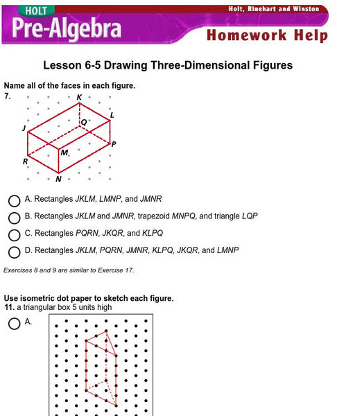 Holt, Rinehart and Winston: Homework Help Independent Practice: Drawing Three Dimensional Figures