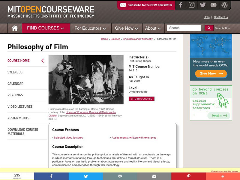 Mit: Open Course Ware: Philosophy of Film