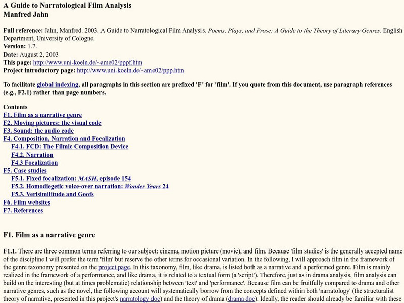 University of Cologne: A Guide to Narratological Film Analysis