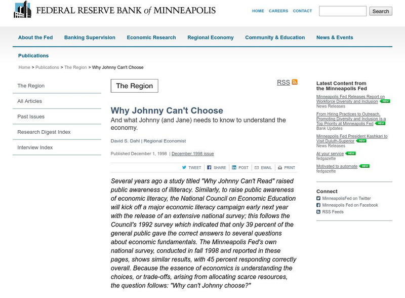 Federal Reserve Bank of Minneapolis: Why Johnny Can't Choose