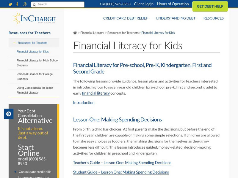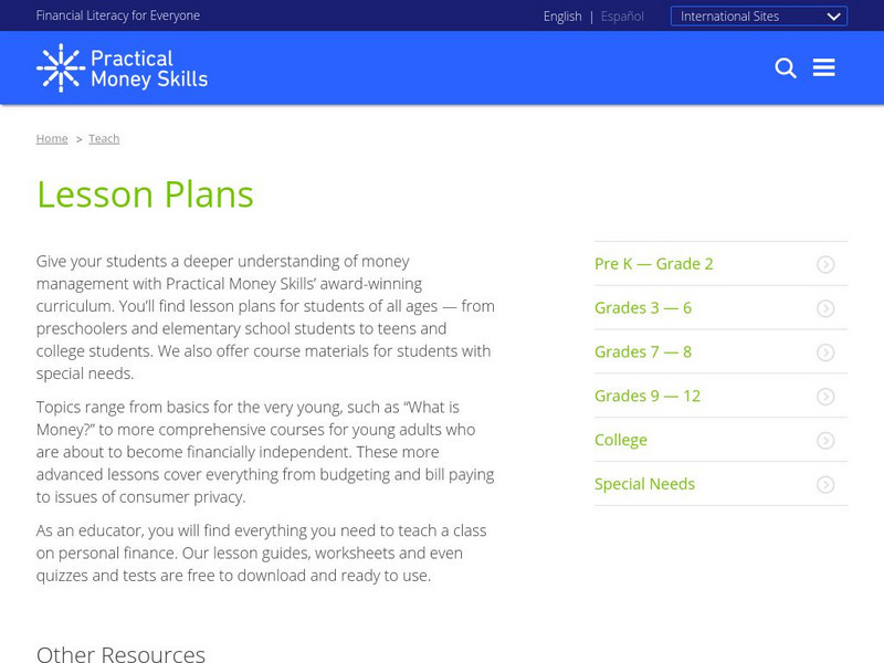 A series of financial literacy lesson plans broken out by grade range for grades from Pre-K through college, with an additional set of lessons created for students with special needs.