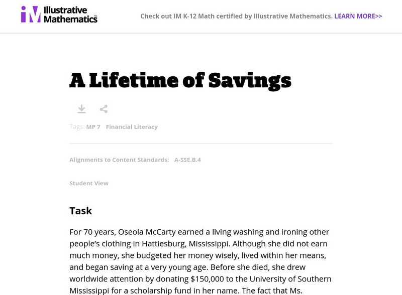 Illustrative Mathematics: A sse.b.4: A Lifetime of Savings