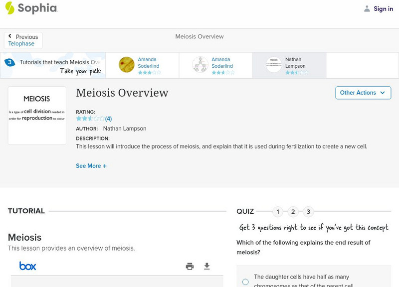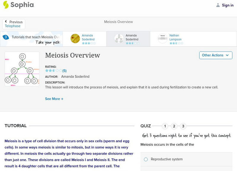 This lesson will introduce the process of meiosis, and explain that it is used during fertilization to create a new cell. It is 1 of 3 in the series titled "Meiosis Overview."
