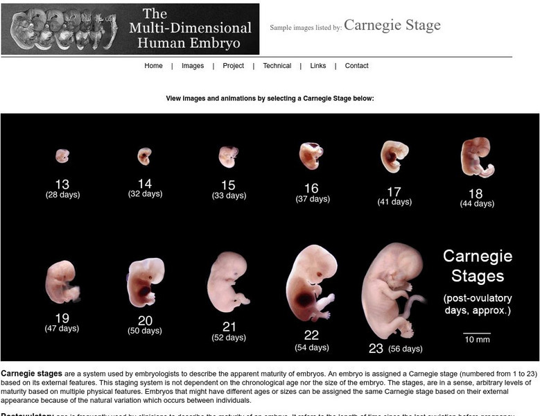Sample images of Carnegie stages of human embryo throught the first trimester.