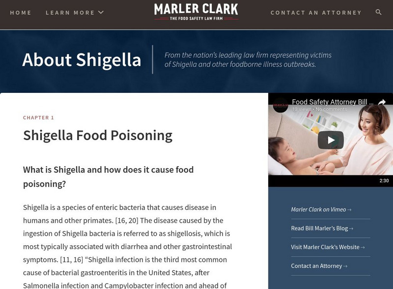 Very informative site! Includes a history of the bacteria shigella and how it was discovered. Also, symptoms, risks, detection, treatment, causes and information about recent outbreaks.