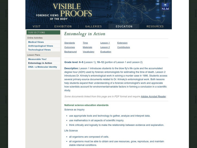Two lesson plans are found in this site. Lesson Plan 1 is geared to grades 6-9. In this plan, student's will be able to list the different stages of the blow fly's life cycle and understand how the life cycle and ADH (accumulated degree...