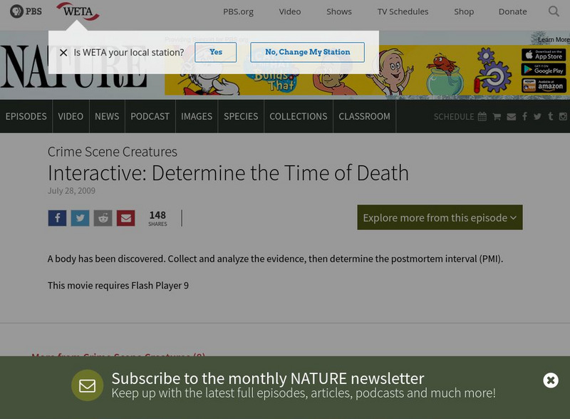 Become a detective with this interactive crime scene! Use tools and animals at the crime scene to help you determine the time of death of the body. By collecting specimens at the scene, students try to determine how long the person has...