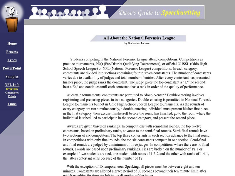 Dave's Guide to Speech Writing: An Overview of the National Forensics League