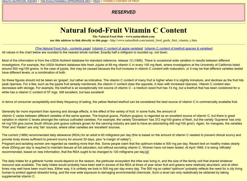 This article talks about the vitamin C content in fruits. Learn how ripening and storage affect vitamin C, what the recommended daily allowance (RDA) for vitamin C is, and how vitamin C affects the human body.