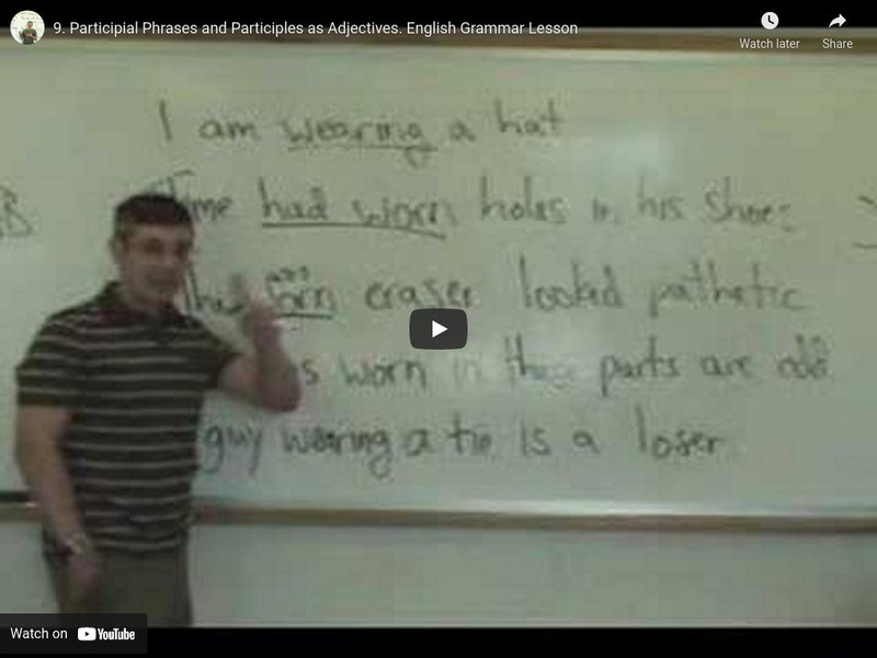 This video lesson from Yossarian the Grammarian explains the topic of participial phrases and participles as adjectives. [4:34]