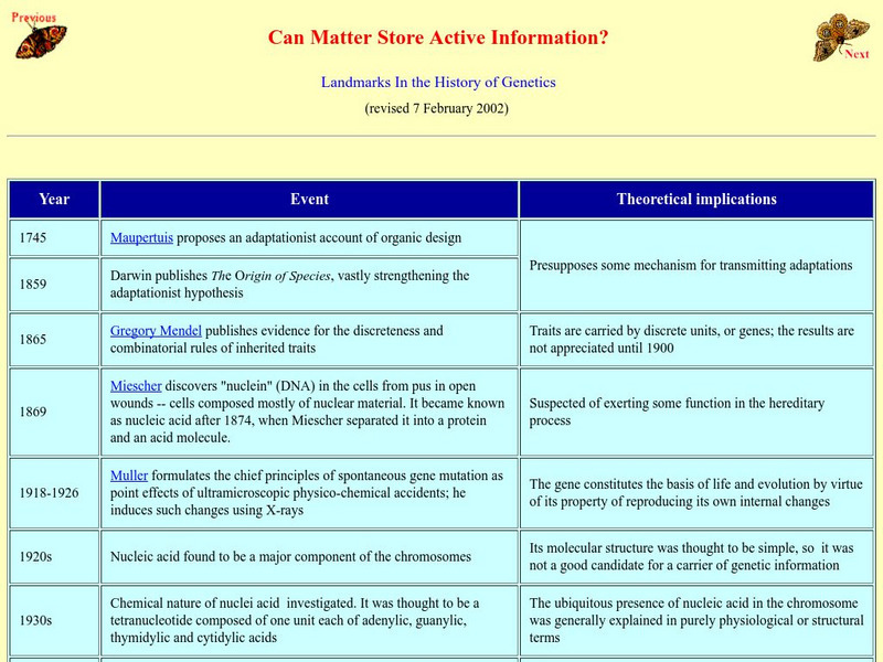 This site provides a timeline of historical events in regards to discovery and research on genetics.