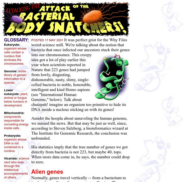 Weird Why? Files article (posted May 17, 2001) unravels the notion that bacteria that once infected our ancestors stuck their genes into our chromosomes.