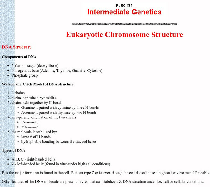 A brief text overview of DNA structure and an introduction or mention of the various forms of DNA.