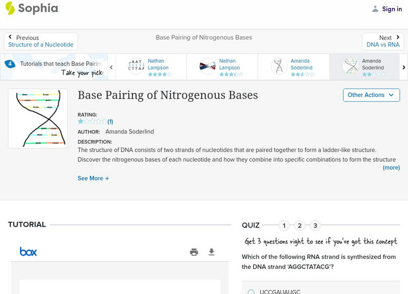 Sophia: Base Pairing of Nitrogenous Bases: Lesson 1