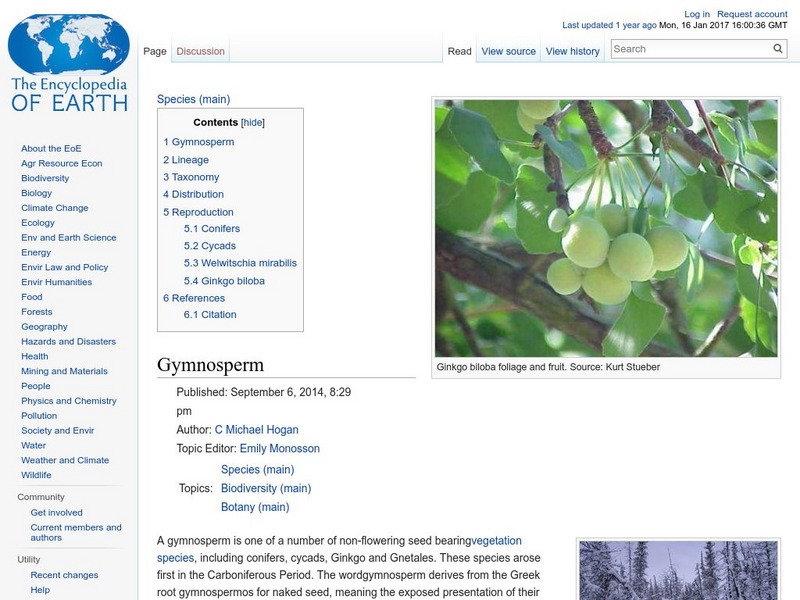 Article explaining what a gymnosperm is, and its origin in the Carboniferous Period. It covers taxonomy, distribution, and types of gymnosperms and how they reproduce. (Published: March 24, 2010)