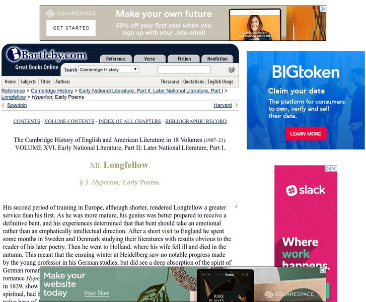 Bartleby.com: Cambridge History of Eng and Am Lit: Henry W Longfellow's Youth