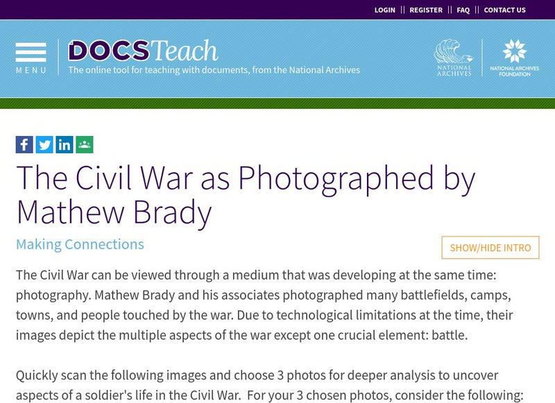 Students will analyze a series of photographs taken by renowned photographer Mathew Brady to reflect on the lives of soldiers during the Civil War. The holdings of the National Archives include over 6,000 photographs taken by Brady and...