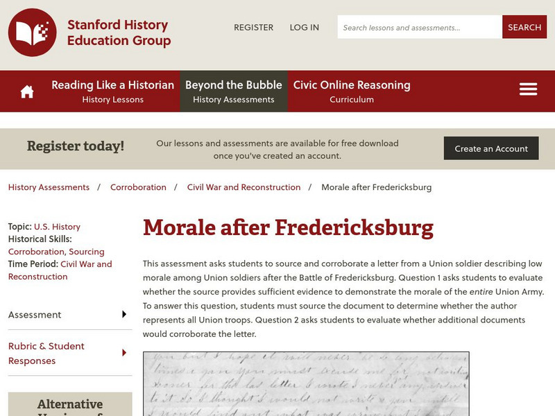 [Free Registration/Login Required] Students examine a letter from Joseph F. Green, a soldier in the Union Army, to his friend Julia Reynolds on January 2, 1863. In it he describes low morale among Union soldiers after the Battle of...