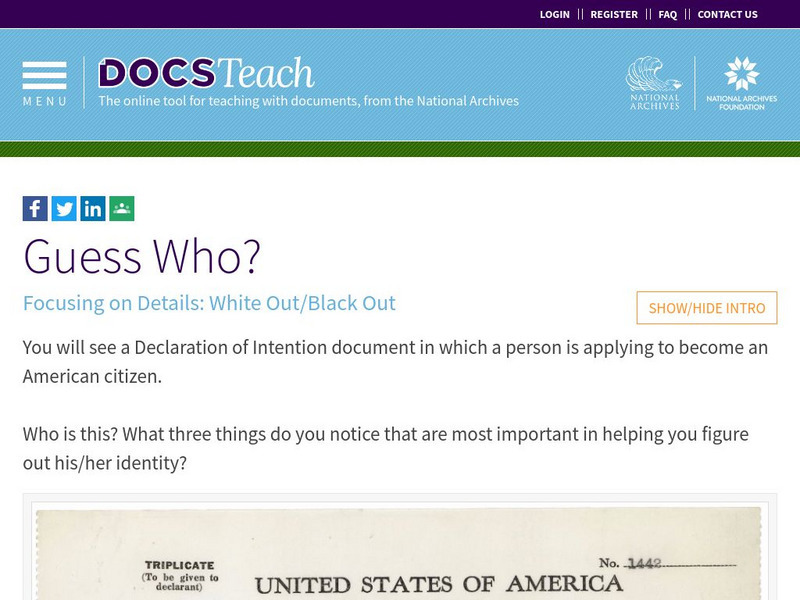 Students will examine and interpret information from a Declaration of Intention document to discover the individual applying for citizenship in the United States - Albert Einstein.