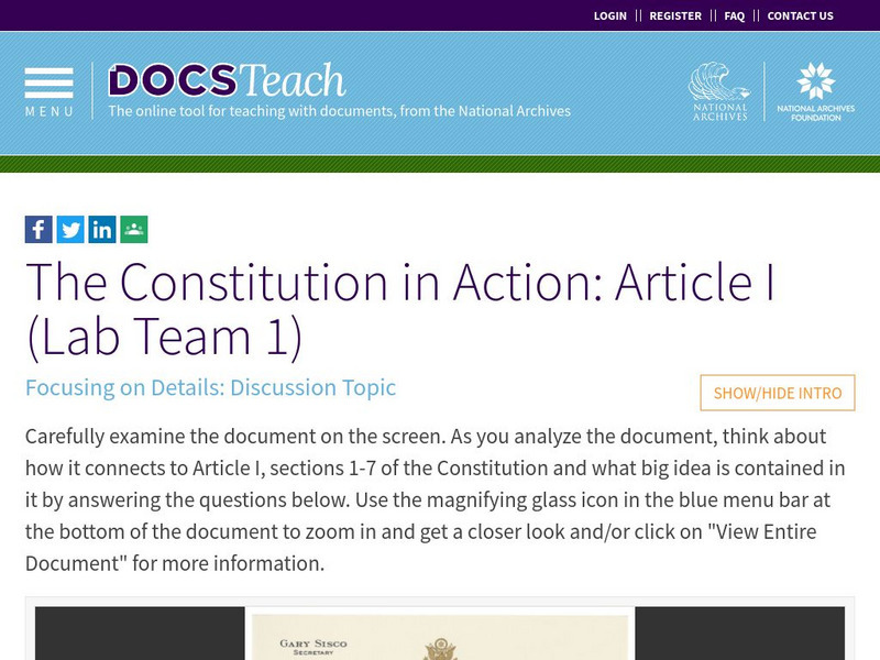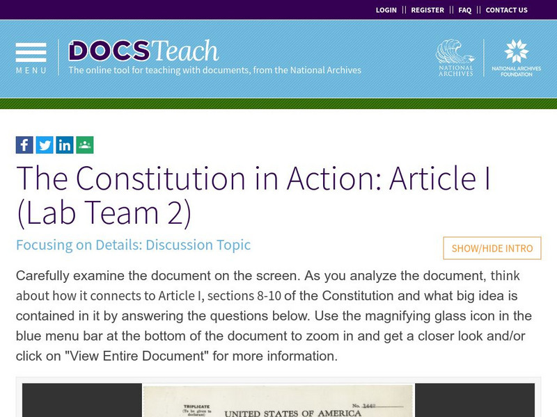 Docsteach: The Constitution in Action: Article I (Lab Team 2)