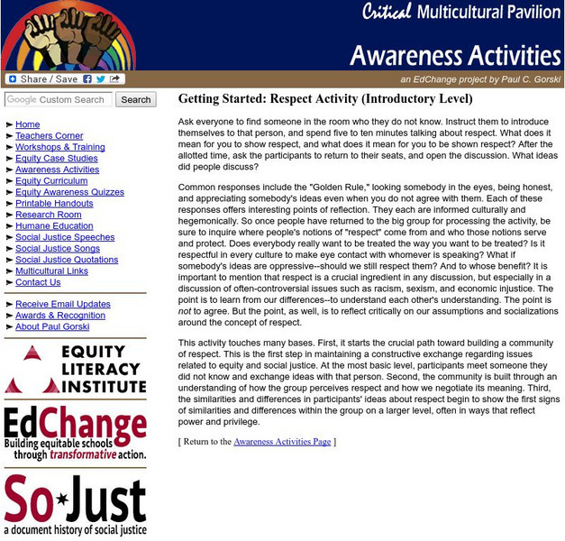 A brief article suggesting a "getting to know you" activity. Discusses the different aspects of respect and learning from our differences. SL.9-10.1d Possitive Communication Stratagies