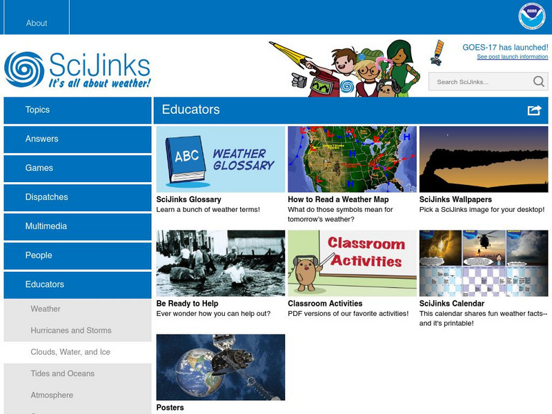 Classroom activities, photographs, and printable posters featuring clouds, water, and ice.