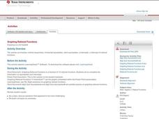 Learners complete an activity, included, of the information on asymptotes and intercepts. They also solve and complete eight questions on graphing rational functions, file included. Finally, pupils summarize vertical asymptotes,...