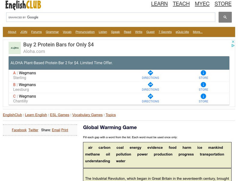 English Club: Esl Games: Vocabulary: Global Warming Game