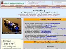 Students build their own boomerang. In this physics instructional activity, students trace the origin of this equipment. They practice throwing and catching them.