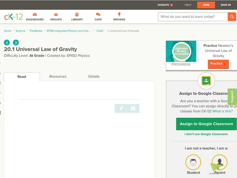 Ck 12: Universal Law of Gravity
