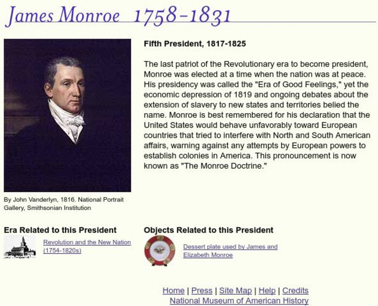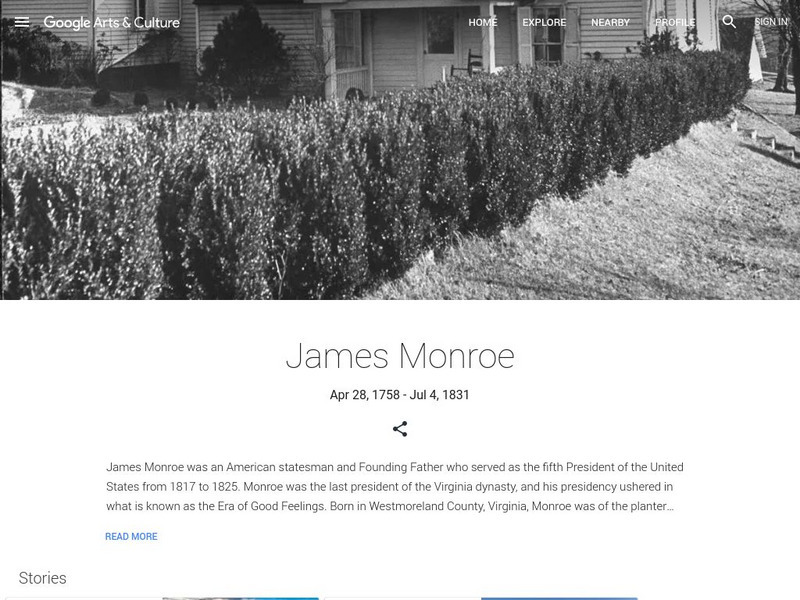 This visual website from Google Cultural Institute shares background information and photos about James Monroe.