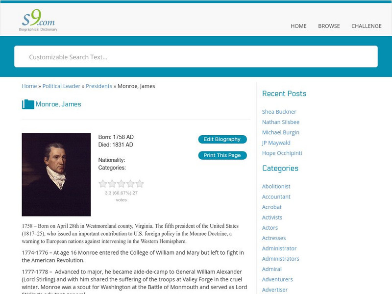 James Monroe was the 5th president of the United States and his biography can be found on this site.