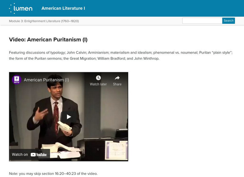 Lumen: American Literature: Video: American Puritanism I