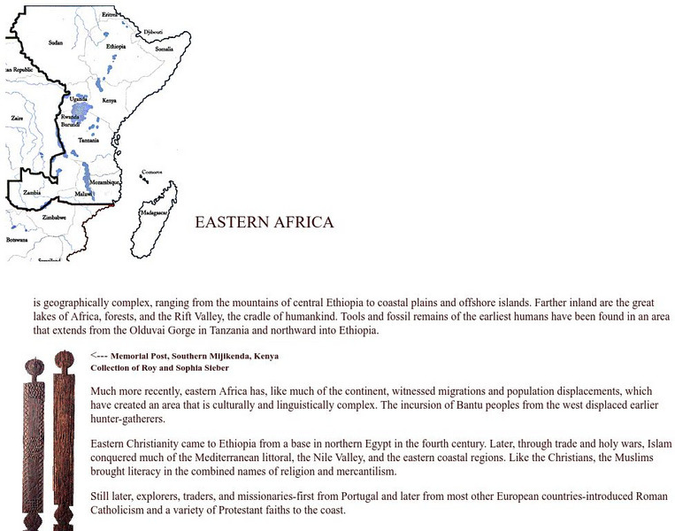 A simple explanation of the Eastern Africa region of Africa, with information on the cultural history and examples of artwork.