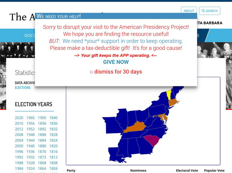 Online resource that provides detailed data for the presidential election of 1832 won by Democratic nominee, Andrew Jackson.